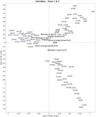 Graphs 1 and 2 represent respondents in the first two factorial axes, divided into three clusters, as well as their attitudes towards co-creation and perceived brand value, together with individual socio- demographic and economic features.