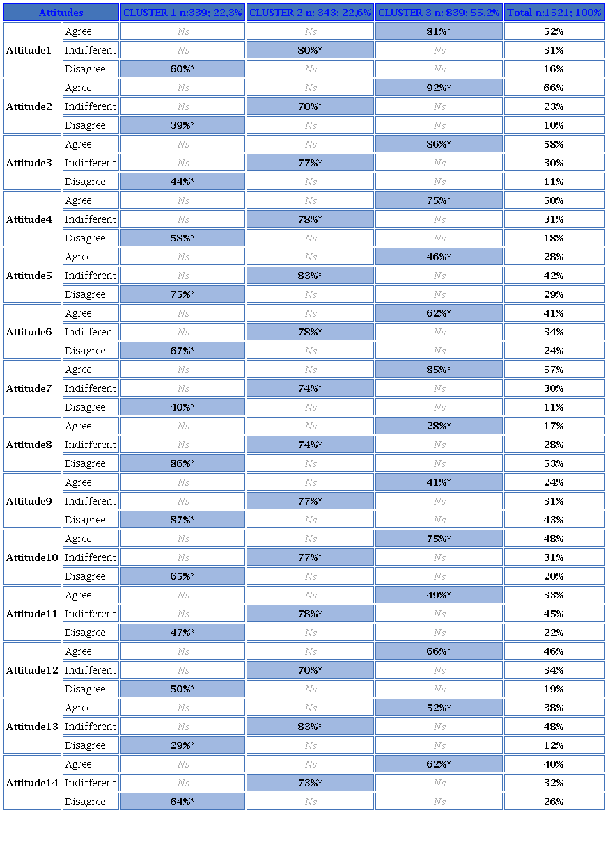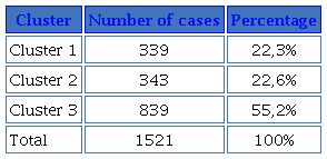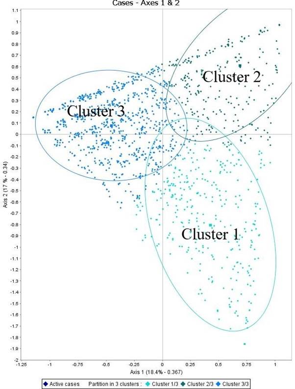 Once the multivariate analysis was completed, three segments were identified that account for 49.6% of total variance (the size of each group can be seen in Table 5).