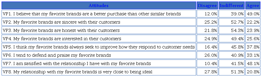 “I am satisfied with the relationship I have with my favorite brands” (VP7)