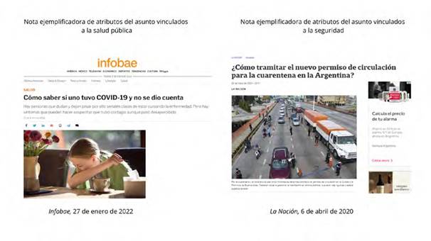 El segundo nivel de la agenda, por su parte, indaga el modo en que un asunto es cubierto por los medios. En ese sentido, estudia la agenda de atributos, entendidos como “características y rasgos que definen a un objeto” (McCombs & Valenzuela, 2007, p.47). En este caso, el objeto es la pandemia en tanto issue central y los atributos se entienden como subtemas que moldean al asunto en sí, esto es: como puntos de vista mediante los cuales tanto los periodistas como el público contemplan al mismo (Ghanem, 1996).