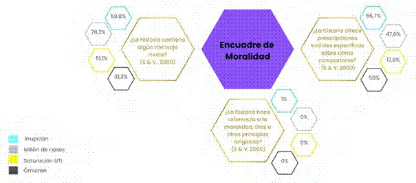 La imagen N°6 muestra los niveles de presencia de cada variable que compone el encuadre de moralidad en cada período analizado.
