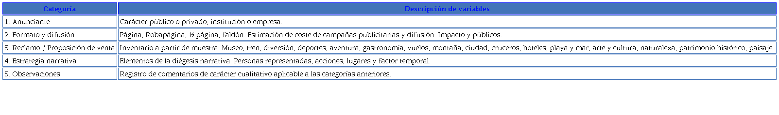 El análisis de contenido (Bardin, 1986) es una de las metodologías habituales en el ámbito de las Ciencias Sociales, con el estudio del mensaje como objeto predilecto (Pineiro-Naval, 2020). Es útil para identificar algunas claves relativas al concepto fundamental, a la significación, pero también a las decisiones de articulación formal, estética y discursiva de los medios de comunicación. Se trata también de una metodología efectiva en el ámbito comercial y publicitario (Hou, 2017; Vespestad y Clancy, 2021). La publicidad turística puede considerarse, en este sentido, enmarcada en el campo de la comunicación especializada. La consideración de un caso específico, como es un medio concreto, así como un año clave, como 2020, se debe a la necesidad de ofrecer un análisis detallado de la influencia de un periodo excepcional como fue la pandemia en la publicidad de viajes, si bien se trata de un trabajo que debe complementarse con investigaciones que amplíen el universo muestral y ofrezcan una perspectiva sobre la evolución a lo largo del tiempo.