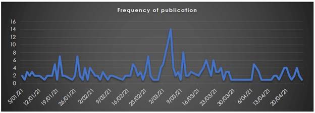 Regarding the temporal parameters of this study, the time frame selected was the first quarter of 2021, which represents a total of 120 days. This period was chosen because, as was pointed out in previous studies on issues related to COVID-19, the further away a crisis communication strategy on vaccination is from the initial outbreak of the pandemic, the more consolidated and less given to improvisation it will be.