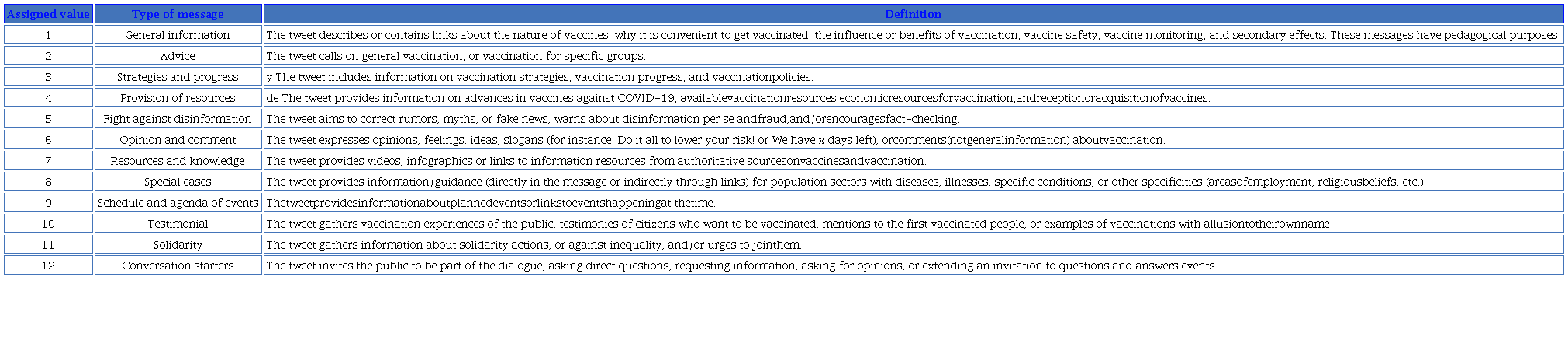 Since one of the objectives of this paper is to shed light on the typology of the messages that constitute the communication strategy of the WHO, a categorization (See Table 1) was created based on the study by Wang et al. (2020) -inspired, in turn, by another of Wukin (2016).