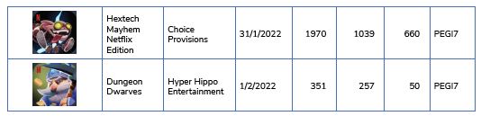 La oferta inicial de videojuegos de Netflix (siete juegos en noviembre de 2021) se mantuvo en los meses posteriores (tres lanzamientos tanto en diciembre como en enero de 2022). Sin embargo, en febrero sólo se añadió un juego al catálogo de la compañía, aunque se anunciaron tres nuevos juegos para marzo. Un ritmo que plantea algunas vacilaciones en la capacidad de Netflix para mantener una regularidad de contenidos en esta primera etapa del servicio, y que sirve de indicador de un músculo en fase de desarrollo.