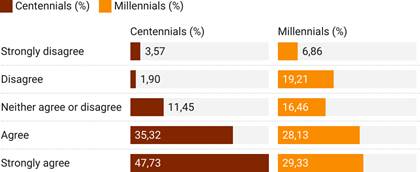 When the survey was conducted in 2022, the millennial generation was composed of people between 26 and 41 years of age, while centennials are those between 18 and 41 years of age