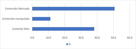 En cuanto al tipo de bulos, el predominio de contenidos engañosos conformados por imprecisiones, exageraciones o descontextualizaciones sugiere que una de las principales estrategias de desinformación es tomar como base un hecho veraz y sacarlo de contexto o tergiversarlo, de manera que se haga más difícil separar los hechos verdaderos de los falsos.