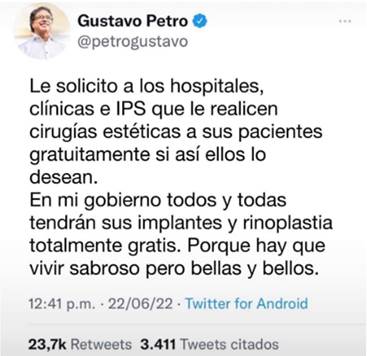 La mayor presencia de la falacia Apelación al miedo implica un mayor nivel de conocimiento del comportamiento social y político. Esta falacia recurre a asuntos públicos sensibles para los ciudadanos como, por ejemplo, para el caso de Colombia, la posibilidad de que el país siguiera los pasos de Venezuela bajo el régimen de izquierda, que compañías extranjeras se marcharan del país, el aumento de los impuestos a pagar o el surgimiento de más violencia. Un ejemplo de este tipo de mensajes se muestra en la Figura 6.