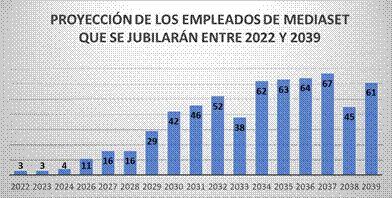 Los datos sobre distribución de la plantilla que se reflejan en el informe de sostenibilidad (Mediaset España, 2021) revelan que existen un total de 1.595 empleados, de los que hay 350 hombres y 276 mujeres mayores de 50 años. Estos datos reflejan que en los próximos lustros la empresa va a vivir un intenso proceso de relevo del talento que el plan quiere dotar de valor y enriquecerlo para que la organización salga reforzada y sus trabajadores transiten este proceso vital de forma satisfactoria. Un proceso de relevo que será muy intenso especialmente cuando se jubilen los nacidos entre 1963 y 1972 que alcanzarán su edad de retiro entre 2032 y 2039. Con diez años de antelación sobre ese momento crítico, el plan podría ir desarrollándose de forma paulatina y engrasar su funcionamiento con los trabajadores nacidos entre 1956 y 1962 que son menos numerosos.