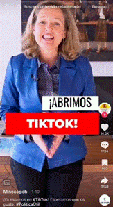 Otro hallazgo llamativo tiene que ver con la personalización de los mensajes que se distribuyen a través de los perfiles de los ministerios en TikTok. Se ha comprobado una tendencia generalizada a la presencia del ministro/a en las publicaciones. Esta presencia del responsable ministerial coincide a lo señalado en diversas investigaciones (Gómez de Travesedo-Rojas et al., 2023; Castro Martínez y Díaz Morilla, 2021) en referencia a la estrategia comunicativa en TikTok de las formaciones políticas en torno al líder de las mismas. En este sentido, se puede tomar el caso del Ministerio de Asuntos Económicos y Transformación Digital, en cuyo perfil de TikTok tiene una amplia presencia la ministra Nadia Calviño ya desde la primera publicación (ver Figura 1), mirando a cámara y comunicando iniciativas y proyectos desde la institución en vídeos realizados expresamente para la plataforma.