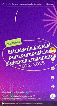 Quizás este contenido también pudiese señalarse como parte de la estrategia publicitaria institucional dejando en evidencia una gestión positiva y proactiva. Otro ejemplo destaca por no tener ningún tipo de mensaje escrito pero que enaltece la labor del ministro de turno, Miquel Iceta, en el marco del día del libro en Barcelona en 2022 (véase https://bit.ly/3rfR68n). Otros ejemplos de publicidad institucional en este sentido se encuentran en otros perfiles, como es el caso del Ministerio de Igualdad (ver Figura 3) para mostrar iniciativas puestas en marcha desde la institución.