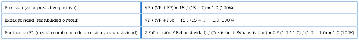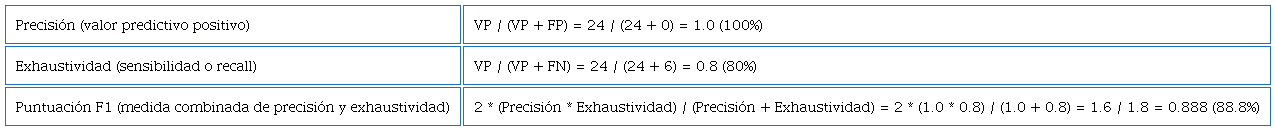 Por último, se calculó la precisión, la exhaustividad y la puntuación F1 como métricas de evaluación para IA (Dalalah y Dalalah, 2023; He et al., 2023), para medir la capacidad de ChatGPT