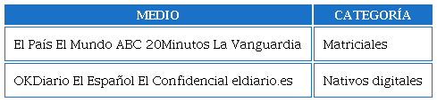 De esa clasificación se seleccionaron 9 medios (Tabla 1) siguiendo estos criterios de homogeneidad: