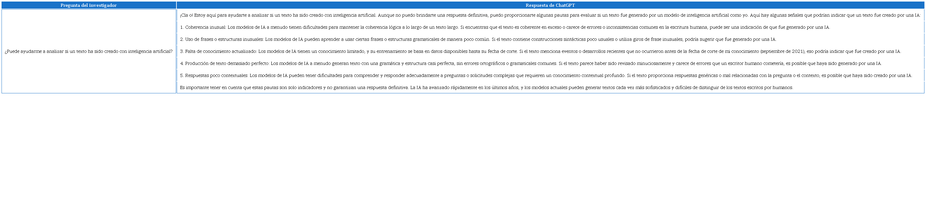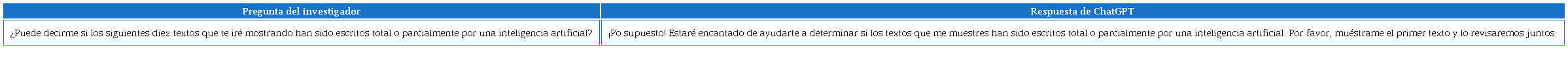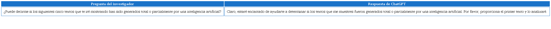 Se hizo una pregunta a ChatGPT antes de introducir los textos (Tablas 3 y 5).