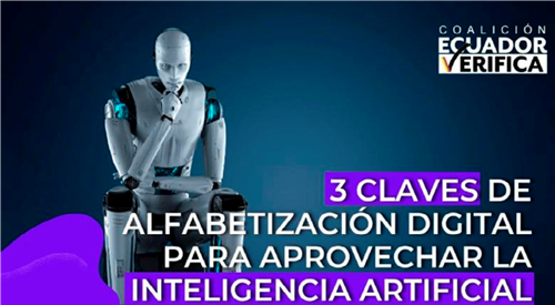 En Ecuador Verifica (Imagen 3) cuentan con una sección web de alfabetización mediática cuyas publicaciones versan sobre aspectos del ecosistema digital fundamentalmente relacionados con el manejo de herramientas, desinformación y seguridad digital, etc. Las convocatorias para las formaciones se publican en redes sociales y llevan a cabo cursos sobre verificación en aulas de secundaria y en universidades. Este tipo de actividades no se promocionan en la web, sino que se buscan alianzas con instituciones (ministerios, colegios, ayuntamientos o universidades) y se ofrecen de manera presencial. Su responsable de alfabetización, Paola Simbaña, puntualiza que se han desplazado a varias ciudades y regiones para impartir diversos talleres y seminarios.