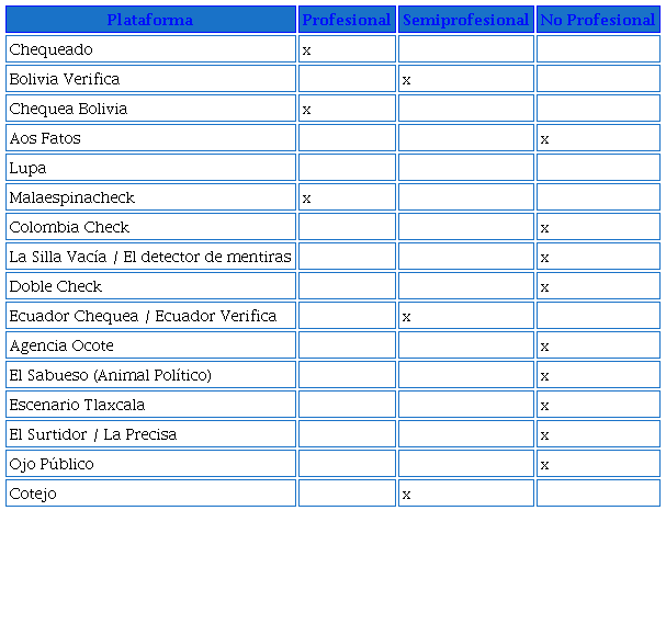 Visto todo lo anterior, parece pertinente continuar examinando las estrategias o programas formativos de las plataformas de verificación conocer su grado de profesionalización y los desafíos a los que se enfrentan.
