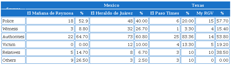 RQ2: What are the sources of news concerning VAWG on the Texas-Mexico border?