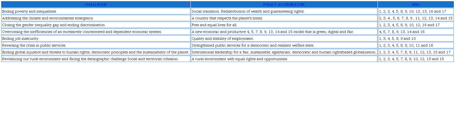 All in all, the university is an agent of social transformation in relation to the SDGs because, in addition to its educational role, it assumes a fundamental role as an agent of awareness, sensitization and communication in the implementation of the SDGs (García Caballero & Herranz de la Casa, 2021). The Sustainable Development Strategy (SDS) rests on 8 axes that follow policies to accelerate the implementation of the SDGs (Table 2).