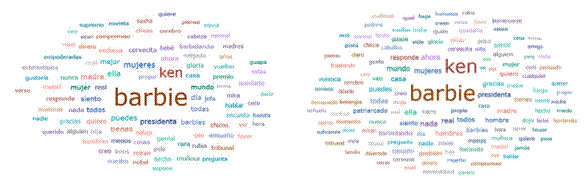 El mayor nivel de coocurrencia está en los códigos patriarcado y relaciones de género, como se observa en el diálogo entre Barbie y Ken en la playa: