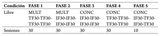 Nota. Mult: múltiple; Conc: concurrente; TF: tiempo fijo; IF: intervalo fijo.
