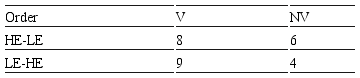 A counterbalanced reversal design was employed for four groups: Nonverbal (NV): HE-LE; Nonverbal (NV): LE-HE; Verbal (V): HE-LE; and Verbal (V): LE-HE. A total of 27 dyads were randomly assigned to one of the four experimental groups[1] (seeTable 3). The primary function of the reversal design was to compare the differential effects of the three forms of rules (HE, ME, & LE) on development of IBs and production of APs. Additionally, the counterbalanced sequences were employed to assess any potential sequence effects.