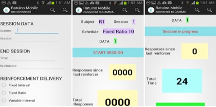 Other inexpensive devices have been used for generating schedules of reinforcement in laboratory courses. Varnon and Abramson (2013), for example, described that a Propeller® microcontroller could be used for demonstrations of learning principles in laboratory courses. Their interface, however, lacked a graphical user interface. The use of an Android® app to control the Arduino® microcontroller board in our design eliminated this limitation.