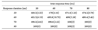 Note. The mean number of simulated responses detected during 10 tests of 500 simulated responses in each combination of response duration and inter-response time. Standard deviation is shown in parenthesis.