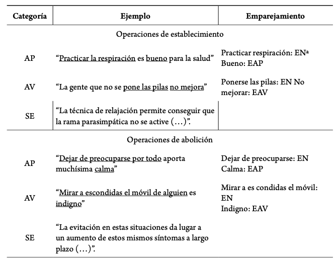 3.2. Operación de abolición: verbalizaciones del terapeuta que tienen como función hacer menos probable la ocurrencia de una clase de respuestas. Normalmente están dentro del bloque pero no necesariamente tienen que estar dentro de un bloque.