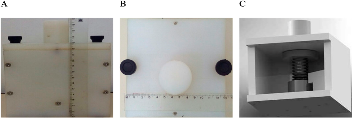 Note. Side view (A), top view (B), and AutoCAD drawing of the inside of the spring button (C