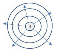 Primeramente, había que determinar el punto de partida de la gráfica. Para esto nos basamos en la simbólica y con ella entramos a elaborar una estructura metafórica apropiada para el caso español. El punto de inicio fue entonces la figura Real como productora de una tendencia. Si en una monarquía el Rey es el centro de la sociedad, de su existencia y de su soberanía, éste debería ser también su “Principio” generador en la iconografía. Bajo este fundamento se ideó luego la figura de la “Proyección” y que metafóricamente se imaginó como la piedra que cayera en el estanque y que irradiara las ondas a su alrededor. Principio y Proyección constituyeron la estructura de base de una parrilla de lectura a la que habría que darle un sentido (Figura 3).