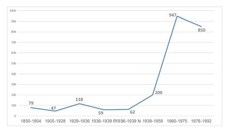 Se inició luego una compleja fragmentación en la que podemos plasmar principalmente dos grandes gráficos: el gráfico de comportamiento global (Figura 6) y el de volumen temático (Figura 7).