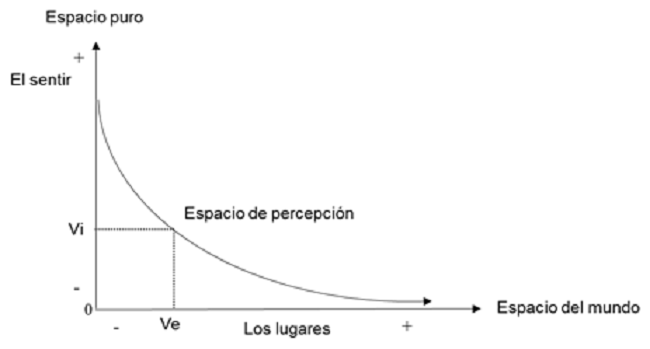 En efecto, este valor-espacio, para tomar forma en la percepción del sujeto, necesita dos valencias constituyentes. Dichas valencias son: la intensidad del espacio y la extensidad que la define, al tiempo que esta última concretiza —sobre la horizontalidad— la dimensión espacial misma, la que reconocemos como la extensión propia del espacio. Así, la valencia de la extensidad se constituye a partir de la relación de diferencia y semejanza, mediante oposiciones que pueden categorizar el sentido del espacio y convertirlo en espacialidad significante. El eje horizontal del esquema tensivo, desplegará, por consiguiente, la espacialidad para convertirla en el mundo gracias a lo que, mediante la lectura del poema, se puede identificar como los lugares. Estos últimos, figuras iconizantes finalmente, proporcionarán la inteligibilidad del espacio y cada lugar tendrá su correspondencia en la intensidad; sin que las respectivas correspondencias en el eje vertical tengan la misma precisión que los lugares poseen en la espacialidad, puesto que sólo adquirirían grados en el nivel de aumento o de disminución que ellas adquieran según las fluctuaciones de las corrientes de la foria, conforme ésta fluye en la dimensión intensiva del diagrama.