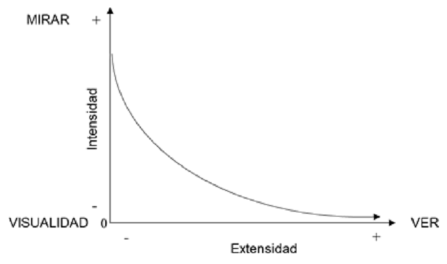 Ese punto de conjunción que muestra el esquema tensivo significa el valor de la visualidad del espacio percibido y es una correlación entre los dos movimientos. Claro está que nosotros, busca, en su propia instancia enunciante, la confirmación de su perplejidad ante lo que observa y cuestiona a tú, se cuestiona: