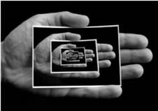 La escala es uno de los atributos de las imágenes visuales que se ubica específicamente en el campo de la espacialidad, aunque los lenguajes que no tienen desarrollo visual o espacial, sino temporal, como el sonido y el lenguaje musical, admiten también variaciones escalares (Figura 6a). Y la escala es precisamente una categoría de naturaleza gradual. Las imágenes dentro de otra imagen que se repiten hasta el infinito se conocen como mise en abyme, ejemplo de lo cual es la serie de imágenes reflejadas en espejos enfrentados. Hay aquí atributos de autosemejanza, homotecia y naturaleza fractal, y se trata de procedimientos gradualistas, con saltos de escala con mayor o menor grado de proximidad entre los pasos o intervalos. Estos saltos o intervalos se pueden hacer tan pequeños como se desee. Lo que los regula es la relación de tamaños o la escala entre la primera y la segunda imagen, ya que las otras imágenes repetirán ese intervalo inicial indefinidamente (Figura 6b).