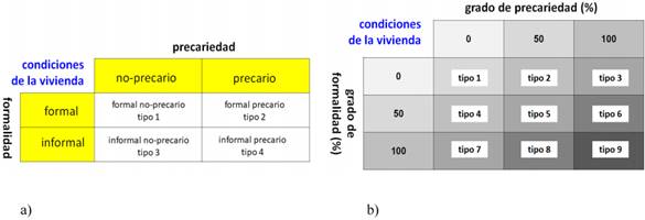 ¿Es posible escapar de la encerrona dualista que propone el lenguaje verbal? Veamos un caso. Las tablas o esquemas de variables con valores positivos y negativos que se suelen aplicar en ciencias sociales funcionan a modo de bordes netos; es decir, mediante una división abrupta realizan una simplificación dualista que, si bien es útil para clasificar determinada información, en la práctica esconde la naturaleza más compleja que generalmente tienen los fenómenos en estudio (Figura 8, izquierda). Si queremos tener información más precisa y matizada al mismo tiempo, registrando situaciones que no sean simplemente “blancas” o “negras”, se podría utilizar el mismo esquema, pero afectando las variables por una escala gradual, aunque sea simplemente agregando una sola instancia de transición. Evidentemente, entre los opuestos “precario” y “no precario” puede haber casos intermedios, es decir, grados de precariedad. Esto permite registrar casos que no se pueden clasificar tan fácilmente por medio de oposiciones (Figura 8, derecha). Si la comprensión de este tipo de categorías, más bien conceptuales o relativamente abstractas, resulta favorecida por un análisis gradualista, ¿cuánto más lo serán los objetos y categorías visuales?