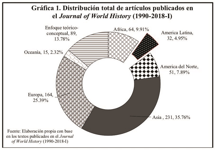 Como se mencionó en su momento, y ahora lo ratificamos con la actualización de nuestra base de datos, estos resultados diluyen en cierta medida los objetivos editoriales inicialmente planteados por los equipos de trabajo que encabezó Jerry H. Bentley, que fueron expresados desde el primer número del JWH (BENTLEY, 1990), que grosso modo consistían en impulsar un foro de discusión con alcances mundiales y superar algunas tradiciones del gremio académico ancladas en la preponderancia de la historia nacional, o en su defecto, los encapsulamientos de las áreas culturales.