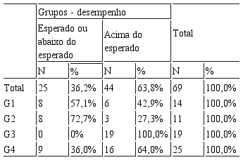 Dessa pesquisa, foram selecionadas apenas as informações dos municípios com mais de cinco mil matrículas nos anos iniciais do ensino fundamental. Com esses dados, procedeu-se a uma regressão, também considerando as dimensões socioeconômicas acima mencionadas. Havia, em 2005, 69 municípios com mais de cinco mil matrículas nas redes municipais nos anos iniciais do ensino fundamental no estado de São Paulo. A regressão mostrou que, desses, 24,4% tiveram desempenho acima do esperado, controlando seus contextos a partir das dimensões socioeconômicas acima citadas. A Tabela 3 mostra que todos os 19 municípios do grupo 3, constituído pelas redes consideradas mais justas, apresentaram desempenho acima do esperado. Isto é, seus desempenhos não podem ser explicados apenas por suas condições socioeconômicas locais. E é somente no grupo 3 que essa situação acontece. Conforme afirma Santos (1979), equidade, no tipo de sociedade em que vivemos, é fruto de política. E, nessas redes, os resultados educacionais não podem ser explicados apenas por seus contextos socioeconômicos.