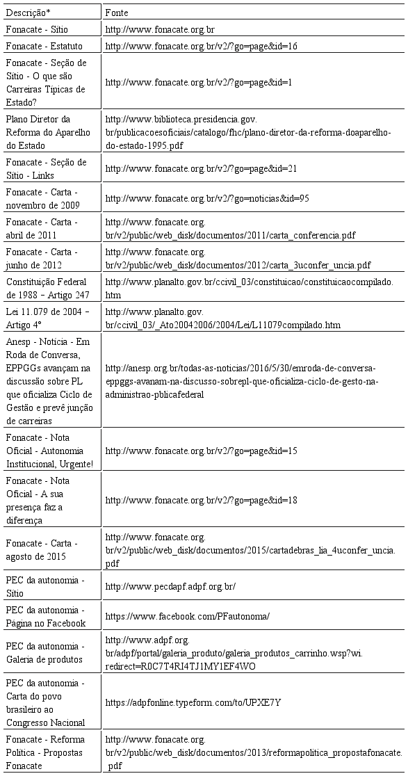 Encontrei muita coisa útil. Examinei dezenas de documentos, a partir dos quais selecionei alguns artefatos a serem empregados mais à frente para caracterizar o discurso geral das Carreiras Típicas de Estado sobre elas mesmas, o que eu considero como a dimensão macro deste trabalho.