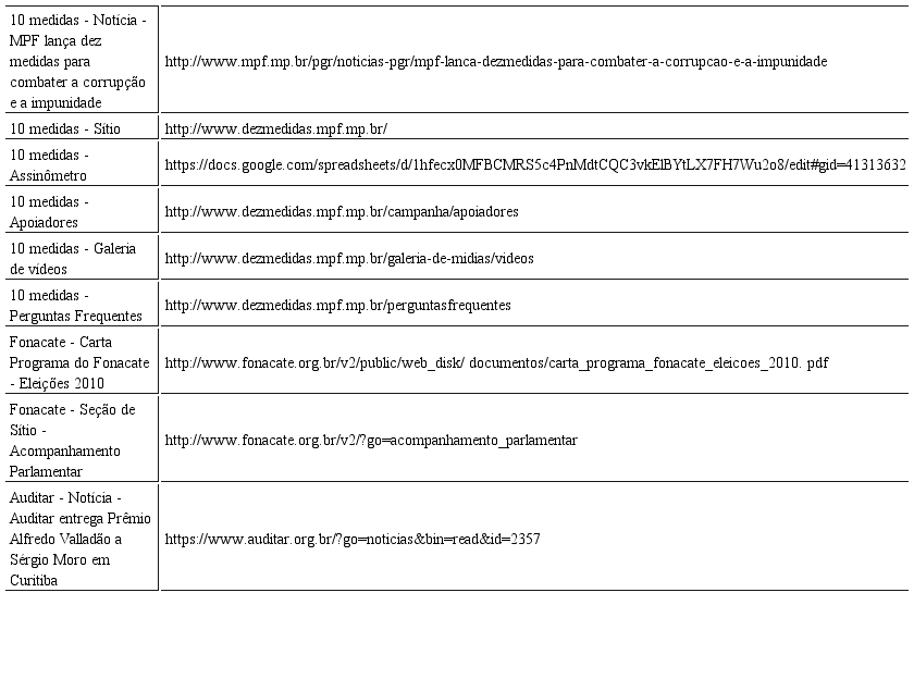 Outra iniciativa foi a criação de uma página[30] de divulgação na internet hospedada dentro do próprio sítio do Ministério Público Federal, indicativo de um grau de institucionalização maior do que a PEC da autonomia, discutida na seção anterior e promovida pela associação de carreira dos delegados, e não pela Polícia Federal em si.