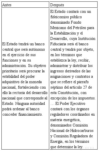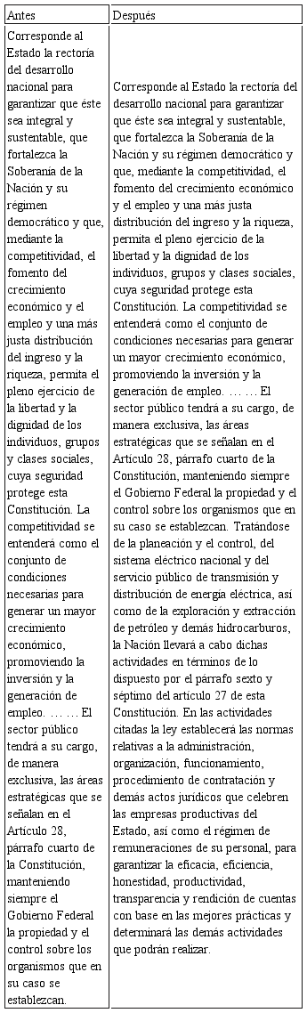 La reforma también incentiva la participación privada en el sector de energía, en la exploración estratégica y la extracción de petróleo y gas natural. El Centro Nacional de Control de Gas Natural surge como órgano público descentralizado, responsable por la operación del transporte nacional, sistema de gasoductos y almacenamiento de combustible. (GONZÁLEZ, 2013).