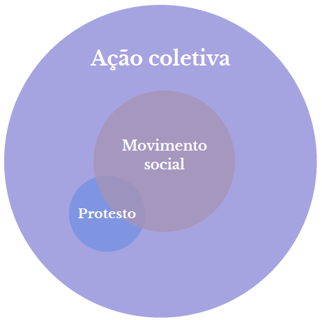Por outro lado, “ação coletiva” pode ser definida como a conexão entre o nível individual e o coletivo, “a ação conjunta de pessoas visando interesses comuns” (Tilly, 1978, p. 7, tradução própria). Refletir sobre a ação coletiva envolve investigar, entre outros aspectos, como os indivíduos podem atuar juntos, por que estes se engajam em um coletivo, como as ações se tornam coletivas e, ainda, quais tipos de ação são adotados para os fins coletivamente estabelecidos. A ação coletiva não necessariamente é contestatória, mas os movimentos sociais caracterizam-se, entre outros elementos, pelo engajamento em ações conflitivas. Destaca-se que os movimentos sociais são uma espécie do gênero ação coletiva, ou seja, movimentos sociais são uma das formas como os indivíduos podem se associar para agir coletivamente. Indivíduos que se organizam pela Internet para a realização de um protesto de rua, por exemplo, configuram uma ação coletiva mesmo que não estejam vinculados organicamente a uma reivindicação ou formalmente a uma organização de movimento social.
