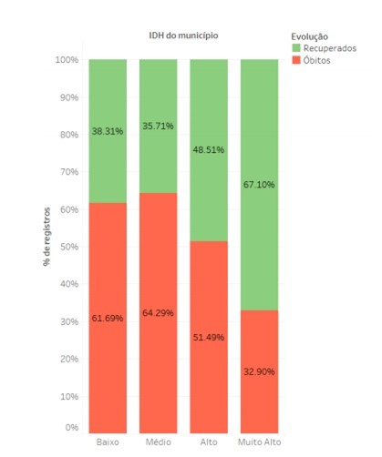Para melhor caracterizar essa desigualdade, tomamos como base o Atlas do Desenvolvimento Humano nas Regiões Metropolitanas Brasileiras (PNUD, IPEA, & FJP, 2014), e, principalmente, o indicador denominado “Índice de Desenvolvimento Humano Municipal” (IDHM), que é uma adaptação do IDH aos indicadores regionais brasileiros. De acordo com a nota técnica divulgada no dia 27 de maio de 2020 pelo Núcleo de Operações e Inteligência em Saúde (NOIS), o IDHM parece ser um fator relevante para o desfecho dos pacientes com Covid-19.