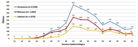 A divulgação desses dados coincide com o colapso do sistema de saúde de Manaus. Em 27 de abril, fazia uma semana que o município contabilizava uma média de 100 sepultamentos por dia. Um dia antes, o município teve o recorde de 140 óbitos em 24 horas. O cemitério Nossa Senhora Aparecida, no bairro Tarumã, Zona Oeste de Manaus, tornou-se emblemático e símbolo desta tragédia por concentrar a maioria dos sepultamentos desse período, com instalação de contêineres frigoríficos para armazenar corpos e abrir valas comuns para suprir a demanda de enterros.