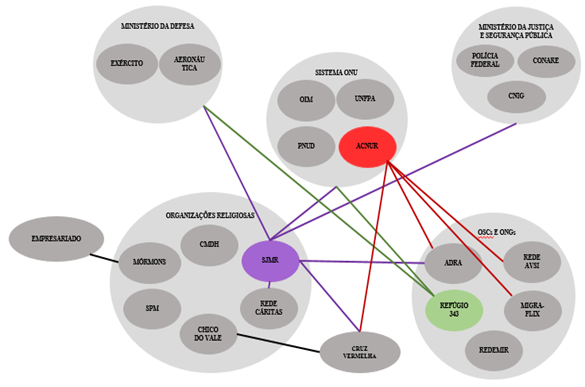 De acordo com Braga (2011), analisar quem são os principais atores e instituições envolvidas no suporte à migração, o tipo de auxílio recebido na origem e no destino do movimento, a percepção sobre a existência de uma ou mais redes atuando nesse processo e quais tipos de redes envolvidas são aspectos importantes para os estudos migratórios internacionais, na atualidade. No caso das redes que abrangem a migração venezuelana, é possível observar não somente indivíduos com vínculos familiares e de amizade, mas, principalmente, muitas instituições que se articulam na ajuda ao ato de migrar, motivam a imigração e dão suporte e apoio, principalmente no destino desses nacionais venezuelanos. Isso reforça o que Braga (2002, como citado por Soares, 2002, p. 19) indicou em seus estudos, caracterizando a migração como um “processo social concreto, [o qual] incluiria redes institucionais e de pessoas que, operando entre esferas micro e macro, organizariam, de fato, a migração”.