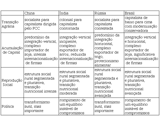 Keywords: BRICS, varieties of capitalism, food regime, agrifood question, comparative institutional analysis.