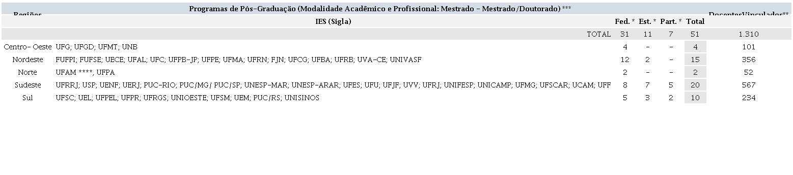 Ainda que o universo do campo da Sociologia brasileira, observado neste artigo, esteja distante do relatado por Florestan Fernandes, o argumento primordial está na construção dos espaços e instituições que abrigam a Sociologia no Brasil. Nesse quesito, Meucci (2000), destacou o Nordeste como berço produtivo dos primeiros manuais de Sociologia no Brasil, já nos primeiros anos do século XX, mas que, “a partir dos anos 1920 houve a transferência radical dos centros de produção cultural do Nordeste para os estados do Sudeste, particularmente Rio de Janeiro e São Paulo” (2000, p.13). No que tange à formação, expansão e composição dos Programas de Pós-Graduação na área da Sociologia, Lima (2019, p.29) observa que os estados do Rio de Janeiro e São Paulo mantiveram a concentração da produção no Sudeste, detendo o maior número desses programas no país.