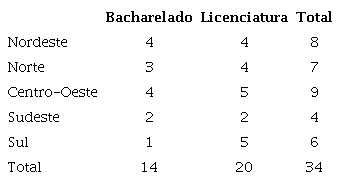 A busca pelos PPCs e PPPs tinha como interesse analisar a estrutura do ensino em teoria sociológica em termos de disciplinas e indicações bibliográficas. Para tanto, era necessário que os documentos possuíssem um ementário em que houvesse a indicação de caminhos a serem trilhados por docentes e discentes na organização das disciplinas. A busca pelos ementários apontou um número menor de resultados. Apenas 34 cursos de 22 instituições possuem ementário com indicações bibliográficas, com predominância de disponibilidade por parte das licenciaturas (Tabela 1).