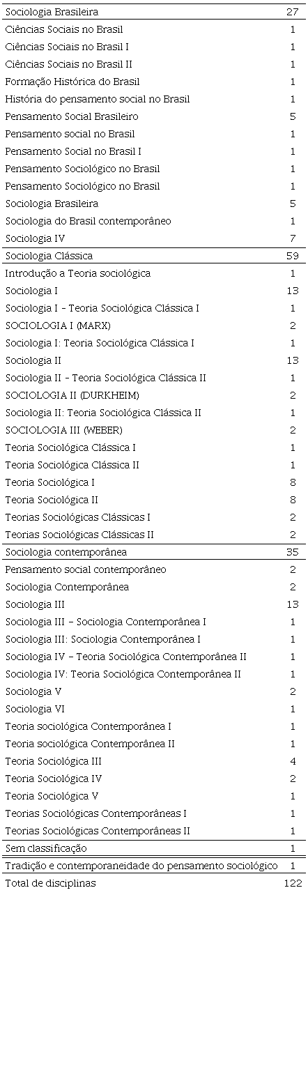 (Maia, 2012, p. 285, nota 2, aspas no original).Isto é, em grande medida, está ausente a capilarização de reconstruir os ditames de o que – e por quais motivos – é reconhecido como teoria sociológica clássica, que se reflete no elevado consenso a respeito das bases fundantes da disciplina. Em suma, é como se houvesse uma espécie de história da sociologia implícita nos currículos e cursos de graduação em Ciências Sociais no Brasil.3 Aceitando-se o pressuposto de que há um conjunto – bastante limitado, diga-se de passagem – de autores que constituem a referência para quem busca fundamentar seus conhecimentos de teoria sociológica, isso embute o entendimento de como ela foi traçada, marginalizando a relevância da problematização crítica desses fundamentos.
