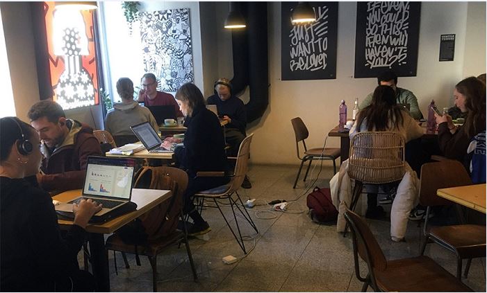 Para além do consumo de bebidas, a utilização dos coffee shops como espaços de coworking tem papel central no setor. Por um lado, há coffee shops que começam a estabelecer regras que limitam o uso das mesas por clientes com computadores (durante o horário do almoço, por exemplo) ou destinam apenas uma parcela das mesas a esse tipo de uso. Alguns cafés apelam a seus clientes para que sigam regras de conduta específicas, como dar gorjetas maiores ou fazer mais pedidos (“Order! Sipping the same large coffee for two hours doesn’t cut it”, lê-se num quadro afixado na parede de um coffee shop na freguesia da Misericórdia). Por outro lado, alguns coffee shops estimulam o uso de seus espaços para trabalho ao criarem “pacotes” que consistem no pagamento de um preço fixo e no consumo de café coado à vontade, por exemplo. Alguns destes cafés também disponibilizam salas para realização de eventos voltados à população de nômades digitais, “expatriados” e trabalhadores remotos, como aulas de yoga seguidas de cook your own dinner-experience, ou mesmo eventos de socialização como speed-dating, jogos de tabuleiro, clubes de leitura, além de encontros periódicos de nômades digitais e expats (organizados via plataforma Meetup). Esses eventos, acolhidos pelos coffee shops, garantem a criação de sociabilidades estratégicas, em inglês, entre esses jovens profissionais, seja no âmbito afetivo ou enquanto potenciais clientes (Mancinelli, 2020).