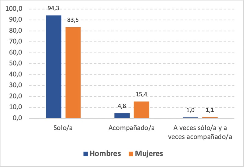 Los resultados de la encuesta indican que las mujeres que más buscan ser acompañadas son las que tienen dependientes. Ellas son el triple que las que no tienen dependientes y se hacen acompañar.